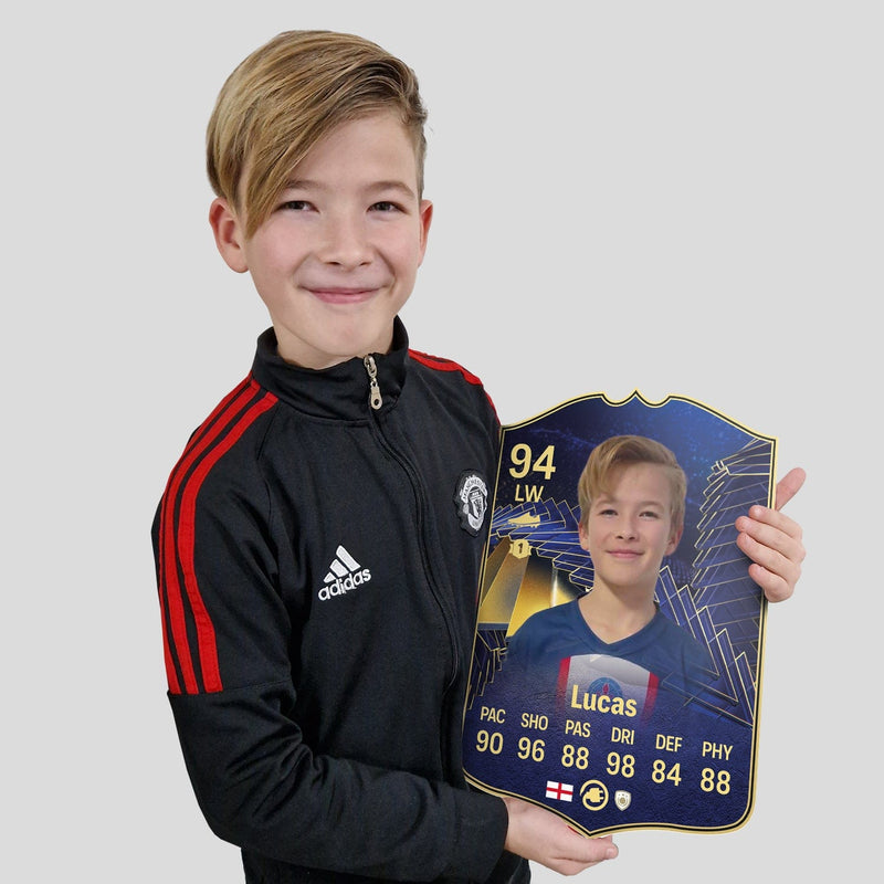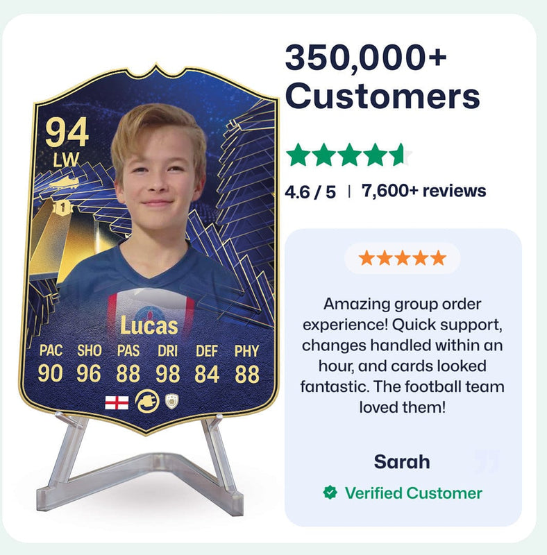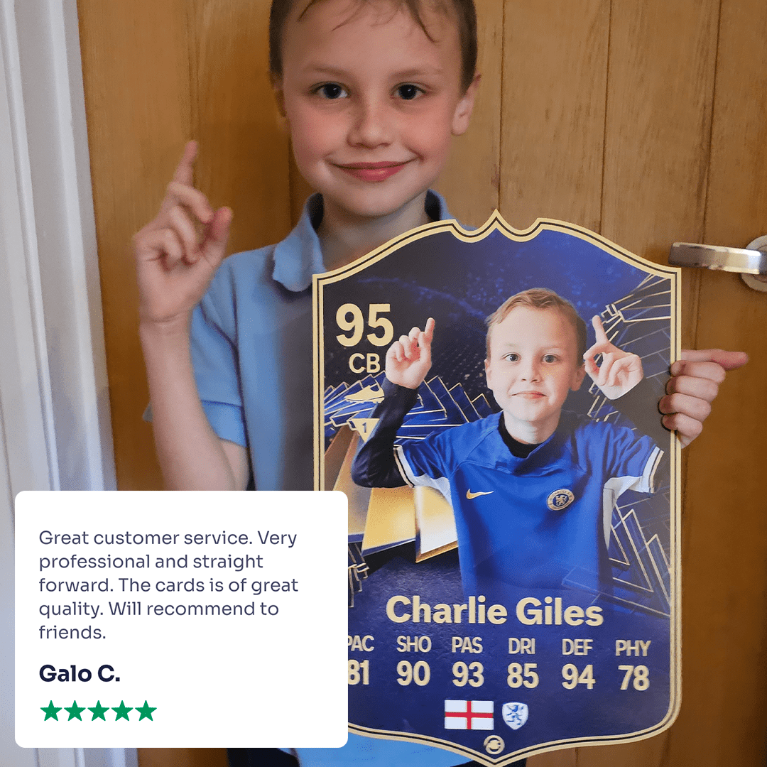 Yes! Our football card designers will remove the background from the photo you upload so it looks just like the football cards you might’ve seen games like EA FC 25, EA FC 24 or FIFA. We’ll also position the photo perfectly on the football card so it looks great. If there are any problems with the quality of your photo, we’ll reach out and let you know. Plus, our website's AI will remove the background on the image for visual purposes before purchase so you can see it without a background on the card.