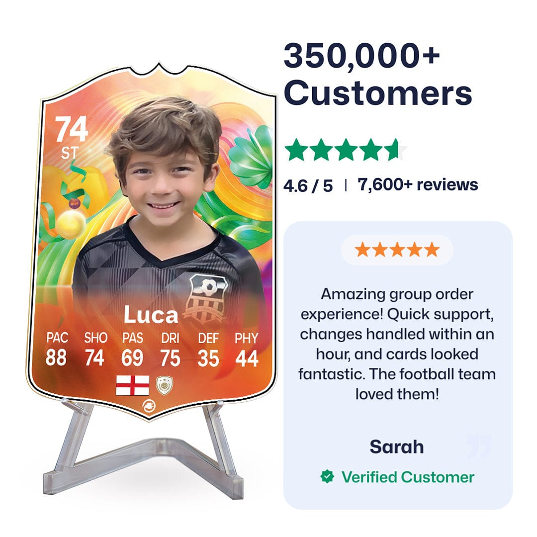 Once you’ve personalised your card, our design experts will edit your photo, design your card, and bring it to life in stunning quality. You’ll get a full preview before we print your card and every card’s quality is backed by our Gold Standard Guarantee. So far, over 350,000+ football fans agree: A CardsPlug football card is the ultimate football gift!