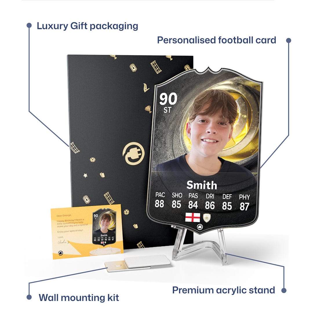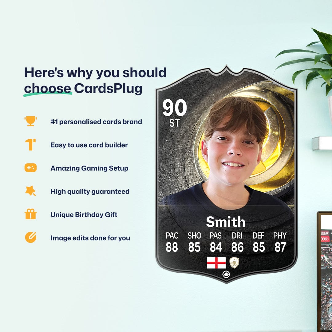 CardsPlug is home to the world’s favourite personalised football cards. Our easy football card builder lets you make a real life football card with your own name, photo, and skill ratings. With 100+ designs to choose from and some inspired by EA SPORTS FC 26 cards seen in EA FC 26, EA FC 25 and FC 24 as well as FIFA cards seen in games like FIFA 23 and FIFA 22.