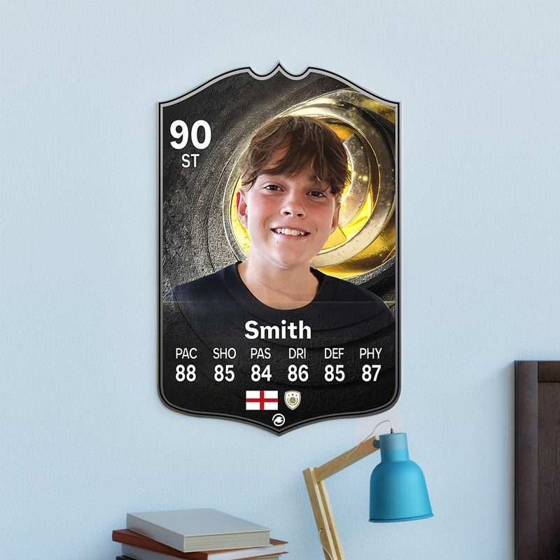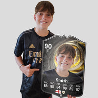 Our football card builder lets you choose between two different card materials. Our Standard cards are made of a ultra-strong variety of Foamex (not cardboard or foam!). This material has a lovely gloss finish and is also super durable. Our world-exclusive Metal football cards have a matte finish and are slightly heavier. Both look amazing and will last forever.