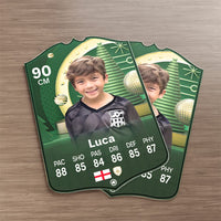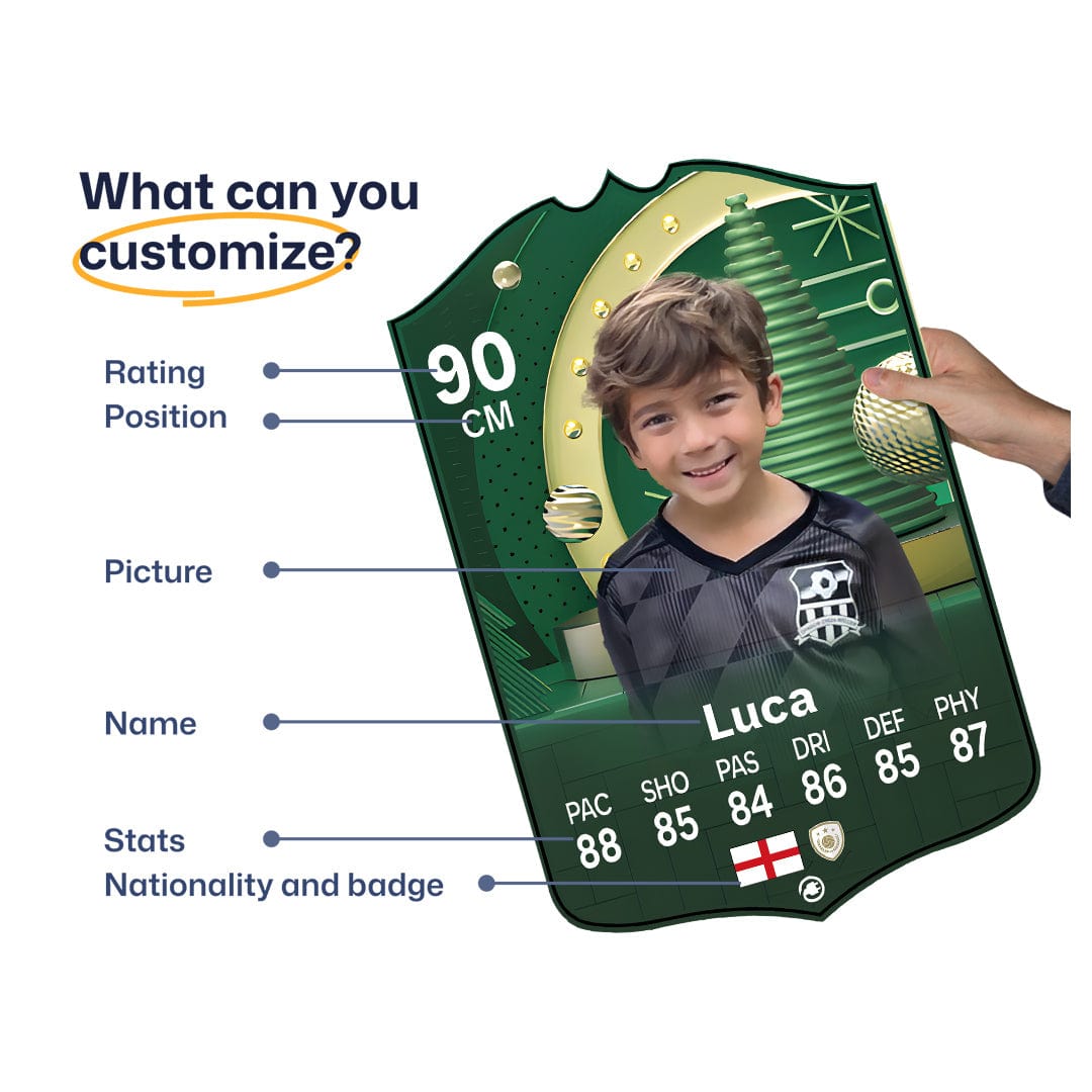 When it comes to personalising your card, the basic steps are to upload a photo and add a name to your card. Then you’ll add details like your player’s position and skill ratings out of 99 for each football skill shown on the card. Our online card builder makes this really easy. And if you aren’t a football card expert, don’t worry!