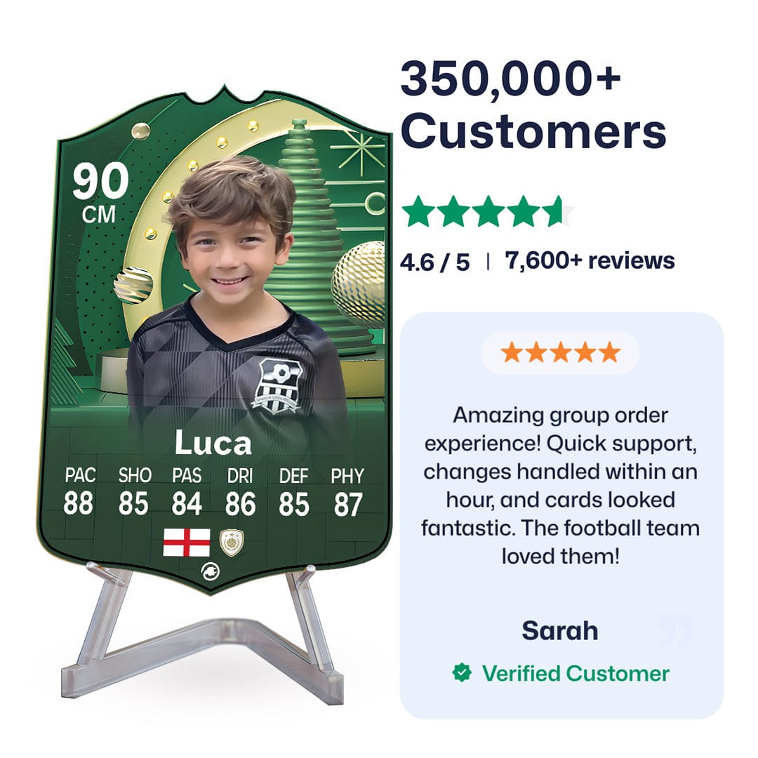 Once you’ve personalised your card, our design experts will edit your photo, design your card, and bring it to life in stunning quality. You’ll get a full preview before we print your card and every card’s quality is backed by our Gold Standard Guarantee. So far, over 350,000+ football fans agree: A CardsPlug football card is the ultimate football gift!