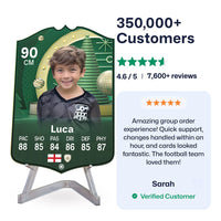 Yes! Our football card designers will remove the background from the photo you upload so it looks just like the football cards you might’ve seen games like EA FC 25, EA FC 24 or FIFA. We’ll also position the photo perfectly on the football card so it looks great. If there are any problems with the quality of your photo, we’ll reach out and let you know. Plus, our website's AI will remove the background on the image for visual purposes before purchase so you can see it without a background on the card.