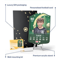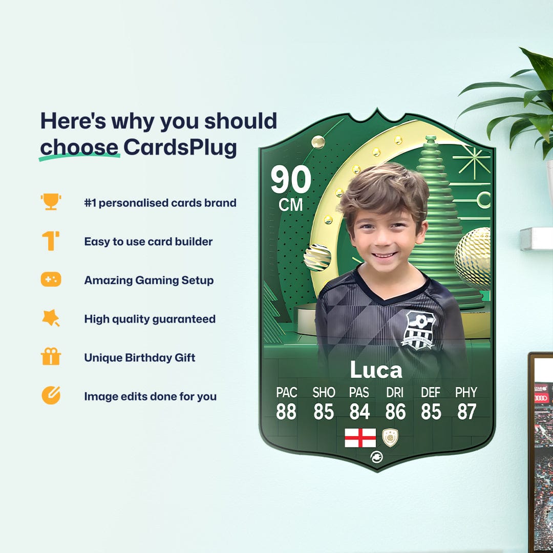 CardsPlug is home to the world’s favourite personalised football cards. Our easy football card builder lets you make a real life football card with your own name, photo, and skill ratings. With 100+ designs to choose from and some inspired by EA SPORTS FC 26 cards seen in EA FC 26, EA FC 25 and FC 24 as well as FIFA cards seen in games like FIFA 23 and FIFA 22.