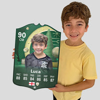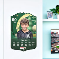 Our football card builder lets you choose between two different card materials. Our Standard cards are made of a ultra-strong variety of Foamex (not cardboard or foam!). This material has a lovely gloss finish and is also super durable. Our world-exclusive Metal football cards have a matte finish and are slightly heavier. Both look amazing and will last forever.
