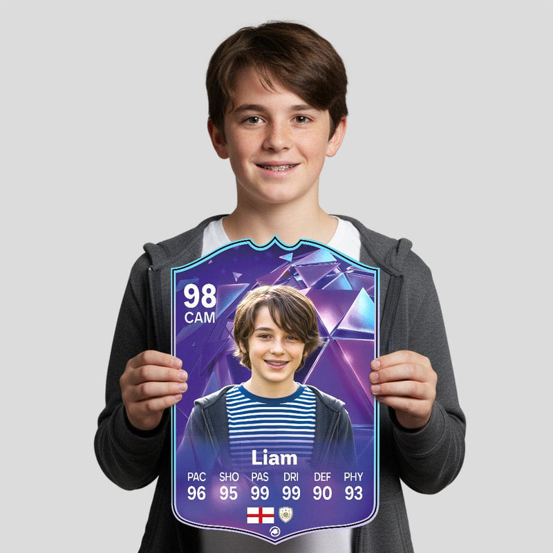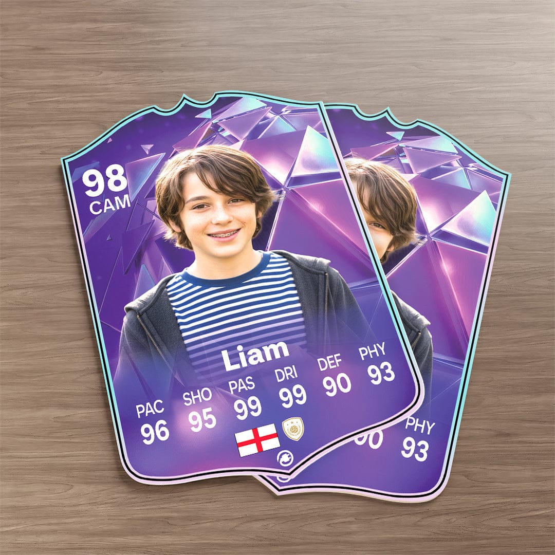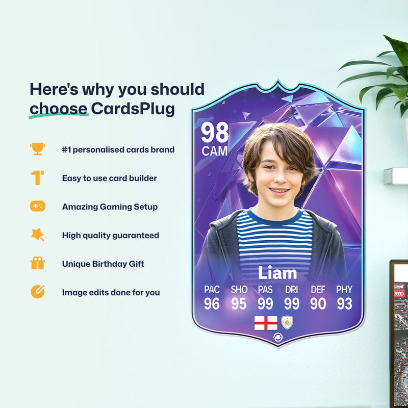 CardsPlug is home to the world’s favourite personalised football cards. Our easy football card builder lets you make a real life football card with your own name, photo, and skill ratings. With 100+ designs to choose from and some inspired by EA SPORTS FC 26 cards seen in EA FC 26, EA FC 25 and FC 24 as well as FIFA cards seen in games like FIFA 23 and FIFA 22.